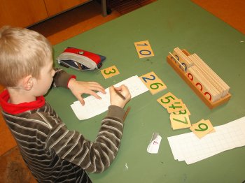 Für den Zugriff auf das Material gilt: „Wer zuerst kommt, mahlt zuerst.“ Jedes Kind kann entscheiden, ob es seine Aufgabe, sein Spiel alleine oder mit Partnern bearbeiten will. Seine Entscheidung gilt.